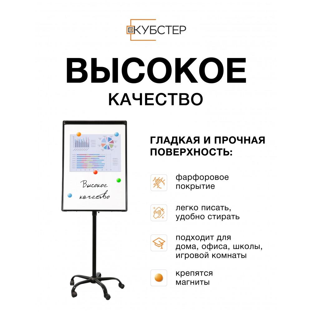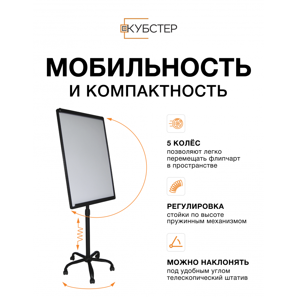 - 5 колес позволяют легко перемещать флипчарт в пространстве
